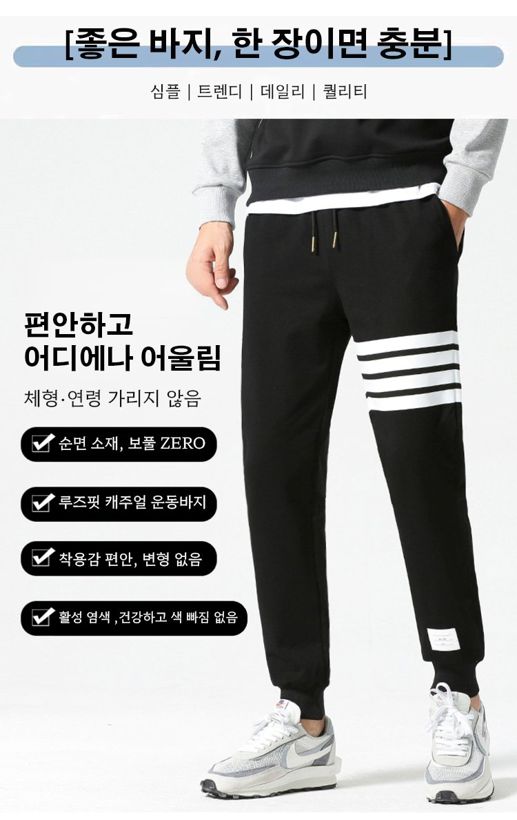 Thom Browne 디자인 스튜디오에서 나온 클래식 캐주얼 팬츠가장 중요한 점은 남녀 공용이라 누구나 쉽게 소화할 수 있다는 점이에요. 즉시 제 다리가 길고 곧아 보이고, 전체적으로 키가 5cm는 커진 느낌이에요!