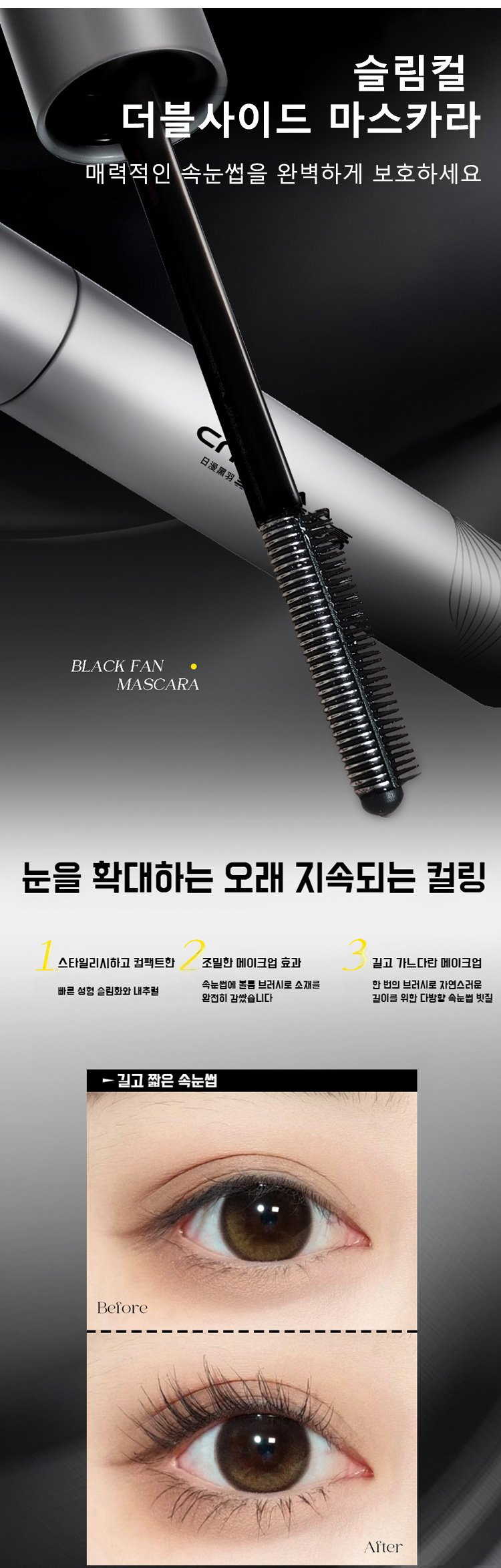 → 100번 발라도 뭉치지 않음, 눈꼬리 끝 속눈썹까지 완벽 커버!